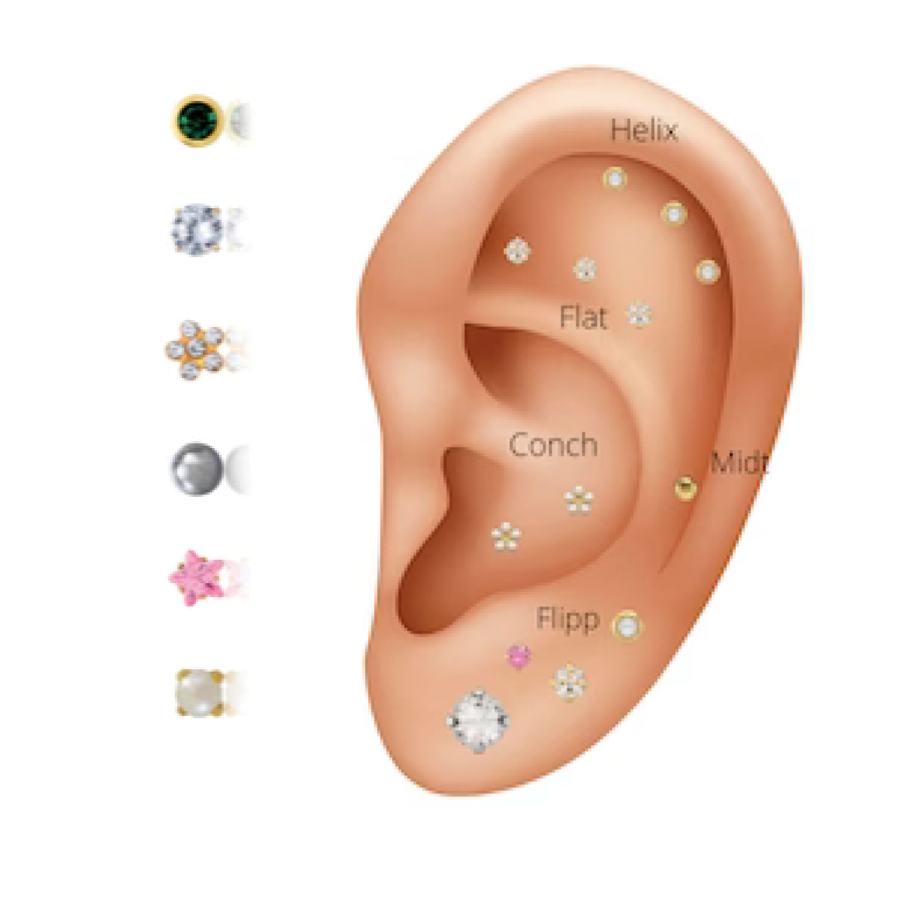 Du kan velge mellom standard smykke som er inkl. i prisen eller mellom en rekke forskjellige sterile smykker for 150kr ekstra. Vi benytter oss av SUDEX- The system 75.