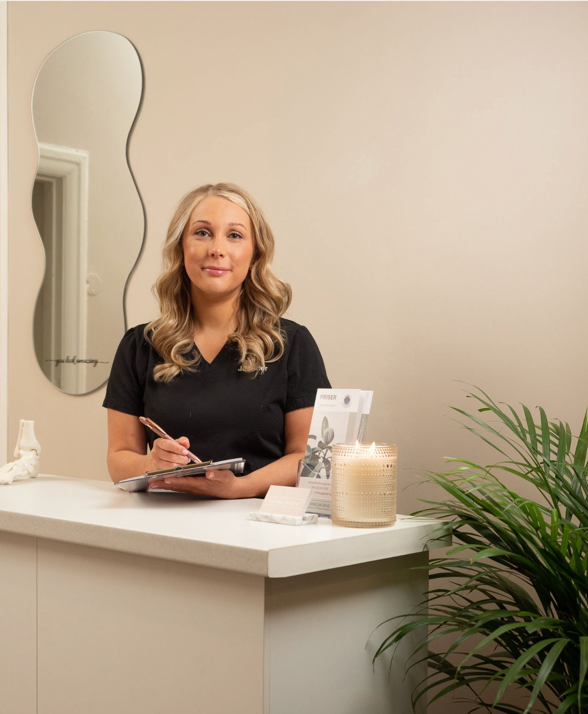 Jennifer er autorisert fotterapeut og utdannet helsesekretær. I tillegg er hun velværeterapeut.